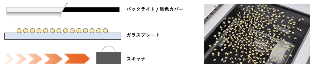 SC-3000Sは、ガラスプレート上に分散させた粒子や繊維のスキャン画像からサイズ・形状を評価することができます。サンプルに応じてバックライトや黒色カバーを使用することで、粒子の輪郭を正確に検出します。また、表面に孔のあるサンプルの測定にも用いることが可能です。